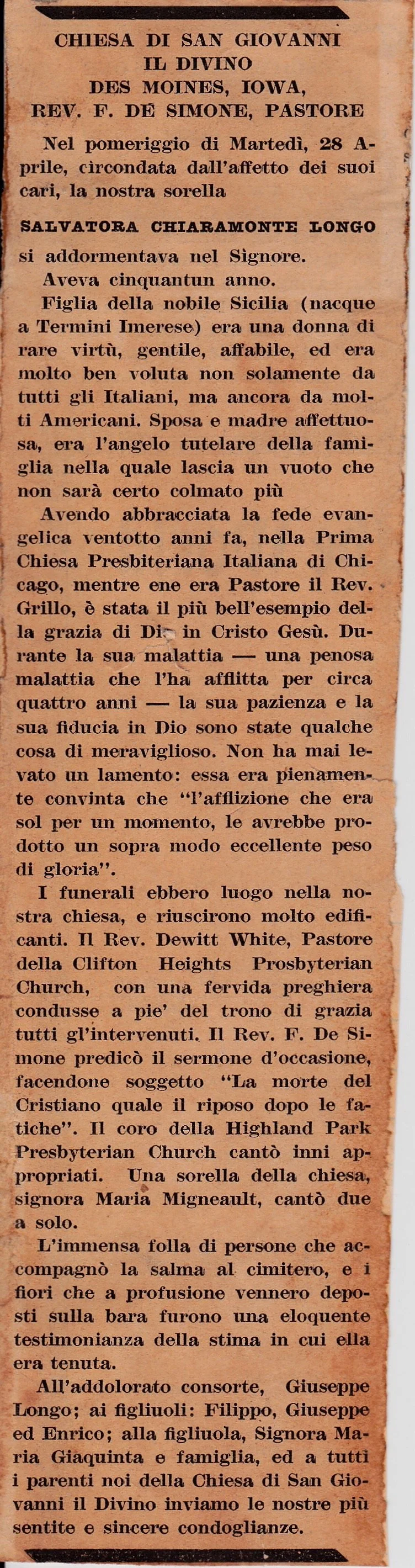 While in quarantine during COVID, I stumbled upon an obituary for Salvatora Chiramonte Longo. This was the moment I discovered that the Longo family hailed from Termini Imerese! If I hadn’t found this article, I wouldn’t have made my way to Termini, and there would be no La Casa Longo today. Since finding that obituary, my journey has unraveled so much more...